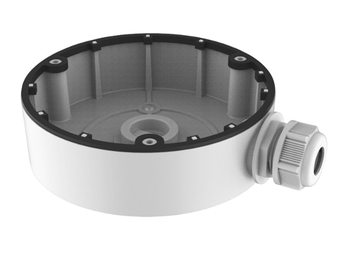 Cutie de jonctiune (doza de legatura) din aliaj de aluminiu pentru camere dome, admisie pe lateral si pe partea de jos, design rezistent la apa, incarcare maxima 1kg, dimensiuni Φ126.7 mm x 35 mm, greutate 210g