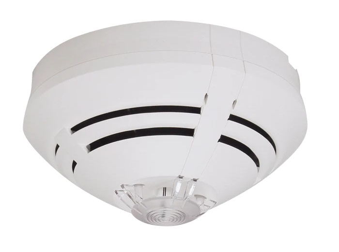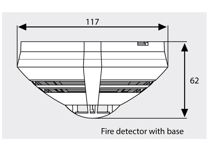Detector multicriterial O²T, seria IQ8Quad, cu izolator integrat, cu 2 senzori optici de fum, avand unghiuri diferite de evaluare a dispersiei, precum si senzor termic, pentru recunoasterea uniforma a intregului spectru de incendii, de la ardere mocnita si pana la ardere deschisa, compararea semnalelor de la senzorii de fum pentru clasificarea aerosolilor detectati si reducerea alarmelor false, tensiune de lucru 8-42 Vcc, suprafata supravegheata max. 110m², inaltime de supraveghere max. 12m, clasa de protectie IP 42, specificatie EN 54-7/5 B, CEA 4021, certificare VdS G 204061, dimensiuni ø: 117 mm i: 49 mm (62 mm incluzand baza), masa cca. 110g, material ABS plastic alb