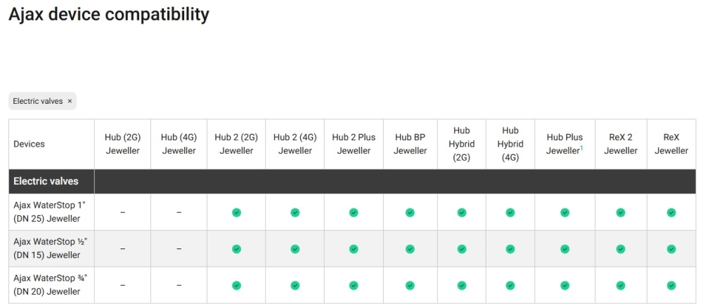 Valva electrica pentru oprire apa, dimensiune valva 1" (DN 25), in conformitate cu standardul ISO 5211, culoare alba, oprire apa in max. 5 sec., opreste lichidele neagresive cu temperatura intre +5°С si +120°С, wireless, alimentare cu 4 baterii CR123A pre-instalate, dimensiuni full size 104 x 159 x 70 mm, control manual sau de la distanta, compatibila cu Hub Plus, Hub 2 (2G), Hub 2 (4G), Hub 2 Plus, Hub Hybrid (2G), Hub Hybrid (4G), Rex si Rex 2