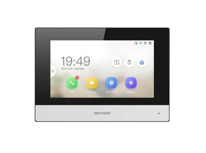 Monitor touchscreen color 7" cu rezolutie 1024 x 600, transmisie pe 2 fire, microfon omnidirectional si difuzor incorporate, capacitate 200 imagini capturate (cu card TF), 200 inregistrari alarma, 2MB RAM (fara card TF) rezervati pentru evenimente, Wi-Fi IEEE802.11b, IEEE802.11g, IEEE802.11n, 8 intrari alarma, 1 interfata RS-485, iesiri alarma - 2 relee (max. 30V), dimensiuni 200x 140 x 23.6 mm