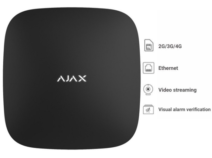 Centrala alarma wireless 868.0-868.6 MHz, tehnologie 4G, 2 SIM-uri, 50 zone, 9 partitii, 50 utilizatori, accepta pana la 100 de dispozitive conectate (max. 5 extendere REX si max. 10 sirene), max. 32 scenarii, distanta semnal radio max. 2000 m fara obstacole, transmitere alarma de la detector la centrala in max. 0.15 sec., transmitere imagine de la detector la centrala in max. 9 sec., culoare neagra, dimensiuni 163 x 163 x 36 mm, greutate 362g, alimentare 230 VAC, posibilitate alimentare cu 6 VDC si 12-24 VDC prin utilizarea modulelor PSU