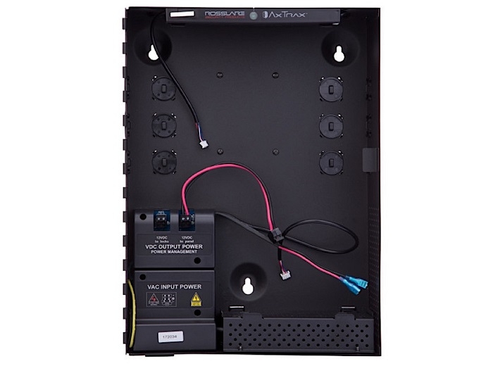 Carcasa metalica pentru centrala AC-425x/225x/215x sursa de alimentare 15V, 4 Amp, 2 iesiri de 13.8 VDC @ 2A cu sigurante resetabile PTC si indicatoare LED (livreaza 4A in total), se poate incuia (yala cu cilindru mini si 2 chei), difuzor 0.5 W incorporat, dimensiuni 364 x 264 x 97 mm, greutate 3.3 kg