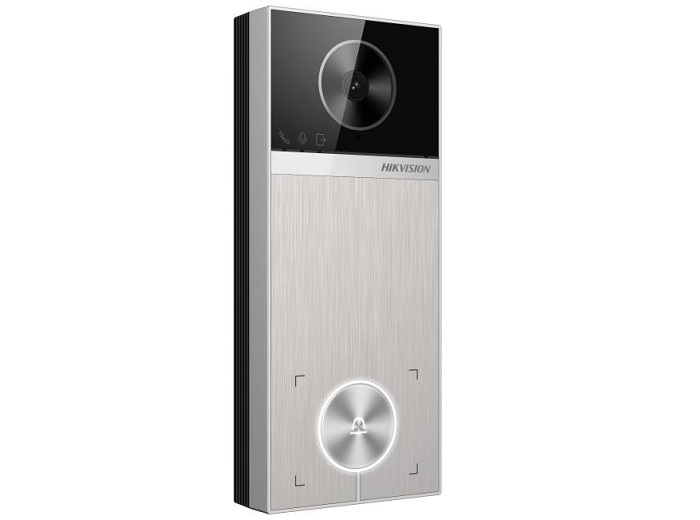 Post de exterior cu 1 buton de apelare si camera 4MP, unghi de vizualizare 150° (H), 75° (V), IR 3m, multiple metode de deschidere (card Mifare 1, Hik-Connect, post de interior), capacitate 2000 utilizatori si 10000 de carduri, microfon omnidirectional si difuzor incorporate, control 2 yale, 4 intrari alarma, accepta card TF max. 128 G, 3 indicatoare LED, IP65, montare aplicata, dimensiuni 164 x 69 x 24.7 mm, alimentare 12VDC/PoE, carcasa partial metalica (aliaj de aluminiu)