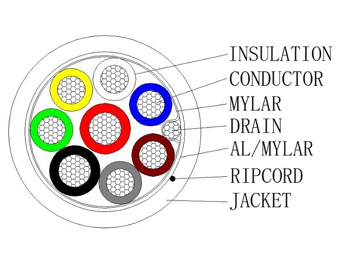 Cablu ecranat pentru antiefractie, 2 x 0.50 mm² + 6 × 0.22 mm², conductor 1 - 7 * (0.185± 0.01) mm, cupru 99.95%, izolare 1 - grosime medie 0.20 mm, diametru 1.15± 0.10 mm, material LSZH, conductor 2 - 16 * (0.185± 0.01) mm, cupru 99.95%, izolare 2 - grosime medie 0.20 mm, diametru 1.35± 0.10 mm, material LSZH, manta - grosime medie 0.50 mm, diametru 4.90 ± 0.30 mm, material LSZH, culoare alba, conformitate RoHS 2.0, CPR Eca, temperatura operare -20°C - 70°C, rola de 305 m