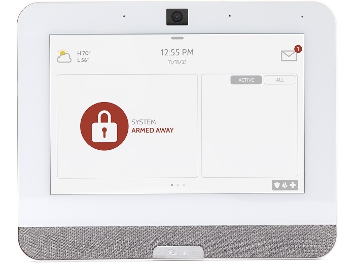 Centrala de alarma IQ Panel 4, touchscreen LCD de 7" rezolutie 1280 x 800 px, comunicare 4 LTE & WiFi (802.11 a/b/g/n/ac, 2.4/5GHz), Z-Wave Plus (700) - pana la 137 dispozitive, PowerG - pana la 128 dispozitive, dezarmare prin Bluetooth, streaming muzica, 3 microfoane cu anularea ecoului, camera 8MP, 1 difuzor frontal 4W, sirena 85dB, 128 zone, 4 partitii, pana la 242 coduri utilizatori, sistem de operare Android 9, integrare PowerManage si ConnectAlarm, certificare EN50131 gradul 2, dimensiuni 155 x 191 x 26 mm